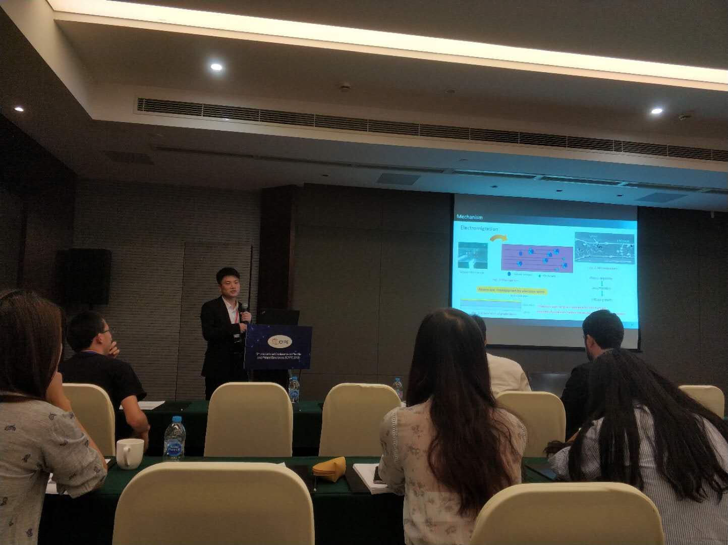 9月25日至28日,机电工程学院机械专业徐晓斌、刘强、宋超三位同学参加了第九届国际柔性与印刷电子大会(The International Conference on Flexible and Printed Electronics),大会期间,徐晓斌同学使用英语进行了题为《Thermal and Electrical Reliability of Printed Silver Thin Films on Flexible Substrates》的成果汇报,并与台下各国专家学者进行了交流,得到了一致好评。
