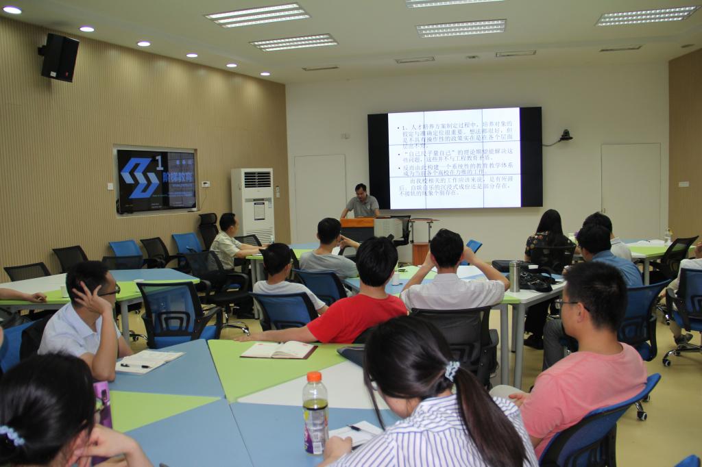 5月17日下午,机电工程学院承办的2018年第四期教学沙龙在越秀校区智慧教室举行。本期沙龙主题为“达成度评价与课程持续改进”,机电工程学院副院长黄风立教授主讲。共有40名老师参加了本期沙龙活动。