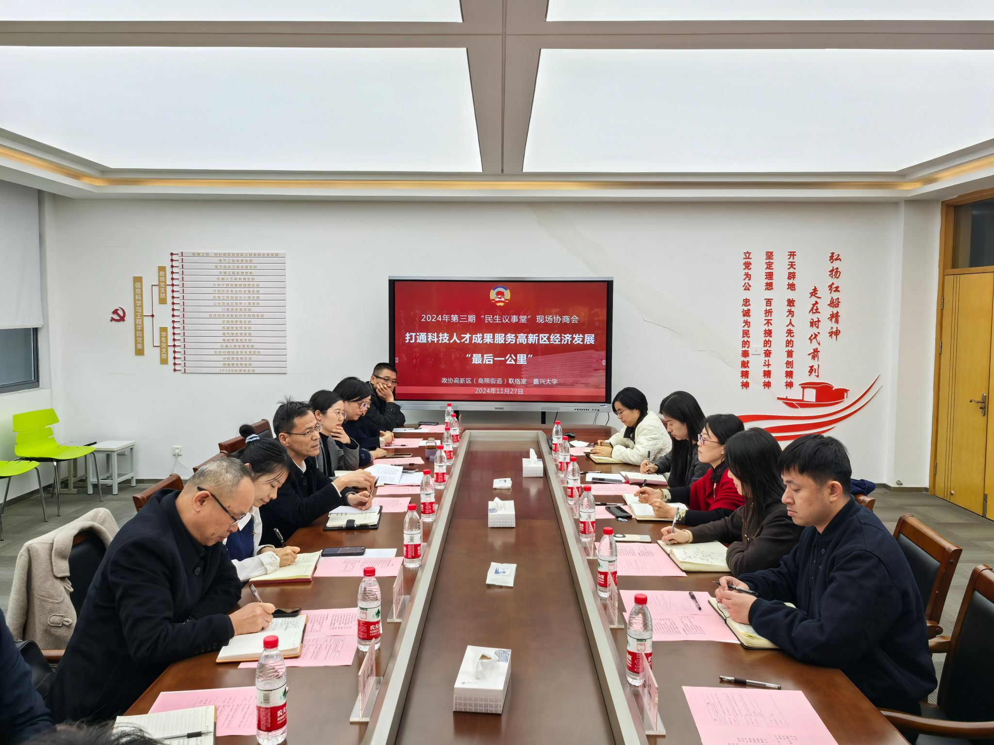 11月27日下午,嘉兴国家高新区党工委副书记冯永福、高照街道党工委副书记姚宏伟带队,政协高新区(高照街道)委员履职小组来校进行调研,开展“民生议事堂”现场协商会。麻豆社