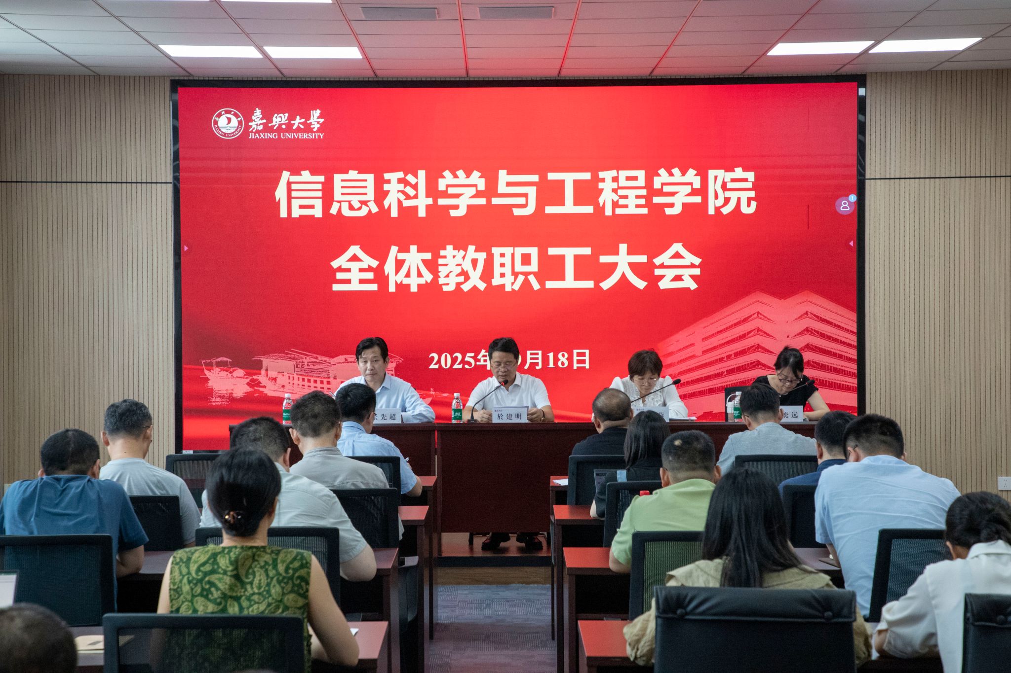 正处在提升内涵、快速发展的关键时期。学院将坚持以“红船精神”为引领,传承和践行“预警机精神”,直面机遇挑战,勇担历史使命。全院上下将坚定不移地做细落实“三个五”思路打法,以尽快建强高水平人才队伍为突破口,锚定发展目标,凝练学科特色方向,凝心聚力,攻坚克难,为开创信息学院事业发展新局面而努力奋斗!