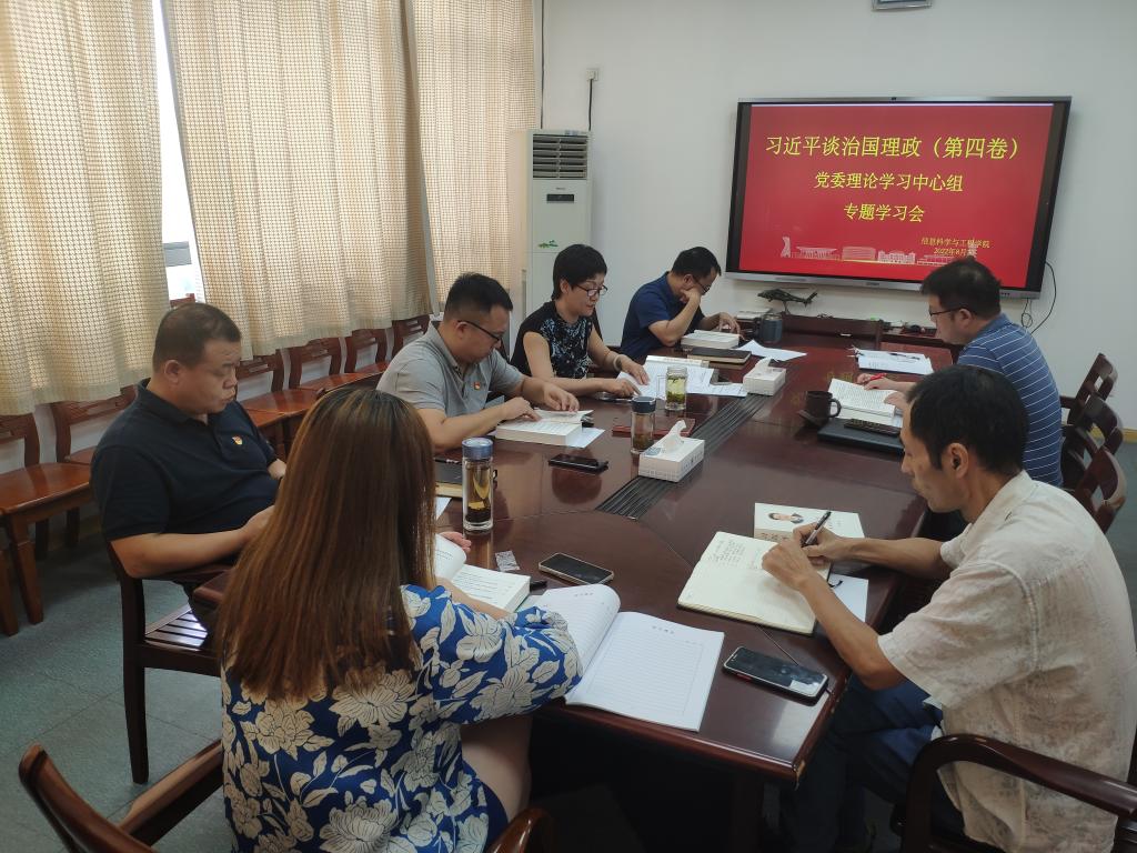 8月30日下午,学院党委理论学习中心组在兴礼楼3楼会议室举行《习近平谈治国理政》第四卷专题学习会。学院党委书记谢宏主持学习会。