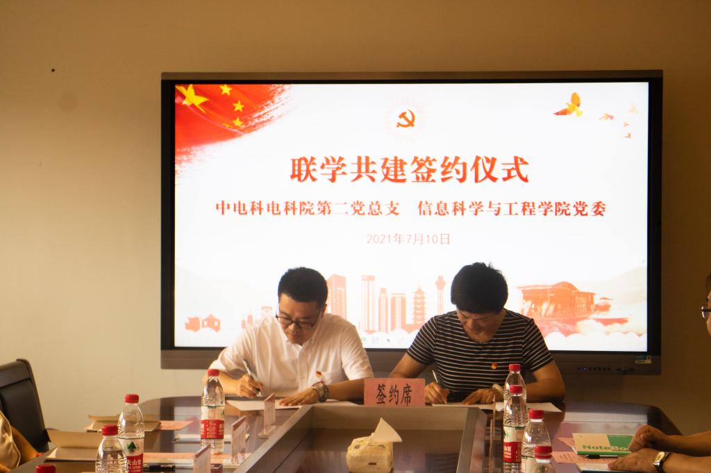 7月10日下午,在我院教工党员之家朱耀东向中电科一行介绍了学院基本情况,谢宏和叶海军就双方党建工作进行了深入交流,并签订了党建结对共建协议。双方表示将进一步着力党的建设,积极探索项目化党建工作新模式,以高度的政治责任感和使命感抓好“结对共建”各项工作,广泛开展技术合作,充分发挥各自优势,努力形成比、学、赶、超的党建工作氛围,进一步激发双方党员担当实干、锐意进取、永远奋斗的干劲和在中心工作、服务大局方面的战斗堡垒作用。最后,大家聆听了麻豆社