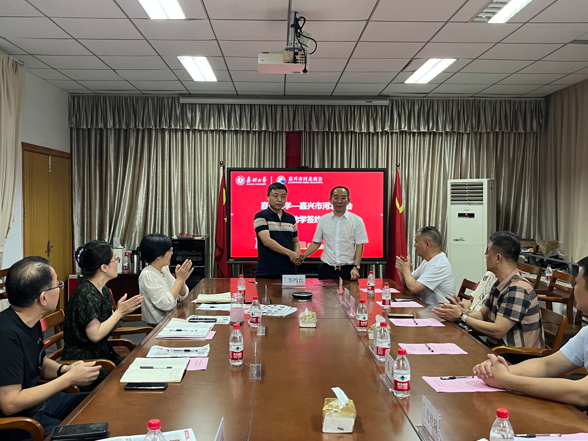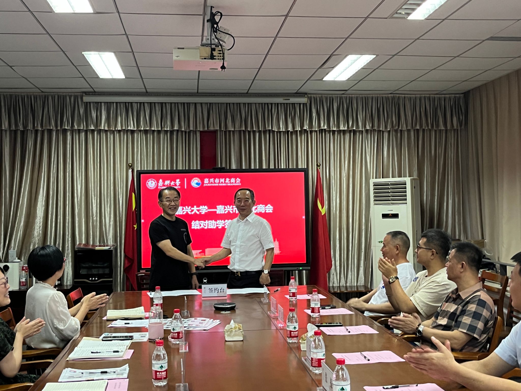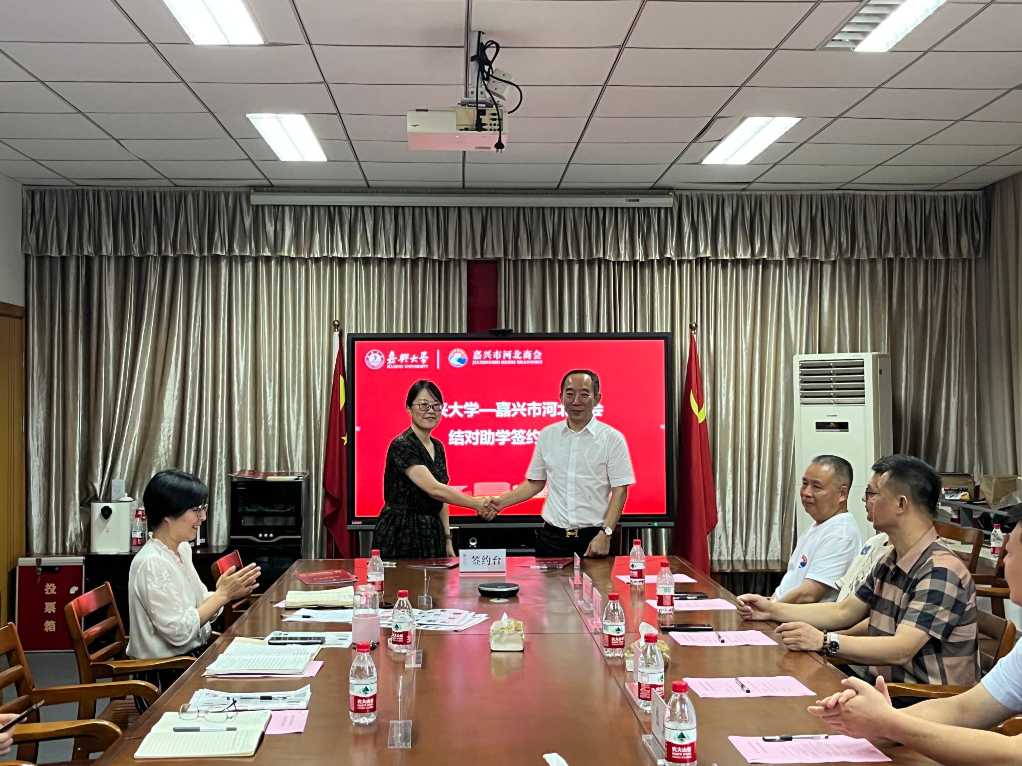 与嘉兴市河北商会在崇礼楼419会议室举行结对助学签约仪式。嘉兴市河北商会会长王振刚、嘉兴市河北商会党支部书记张振、嘉兴市河北商会执行会长弋仕琦等一行人,麻豆社