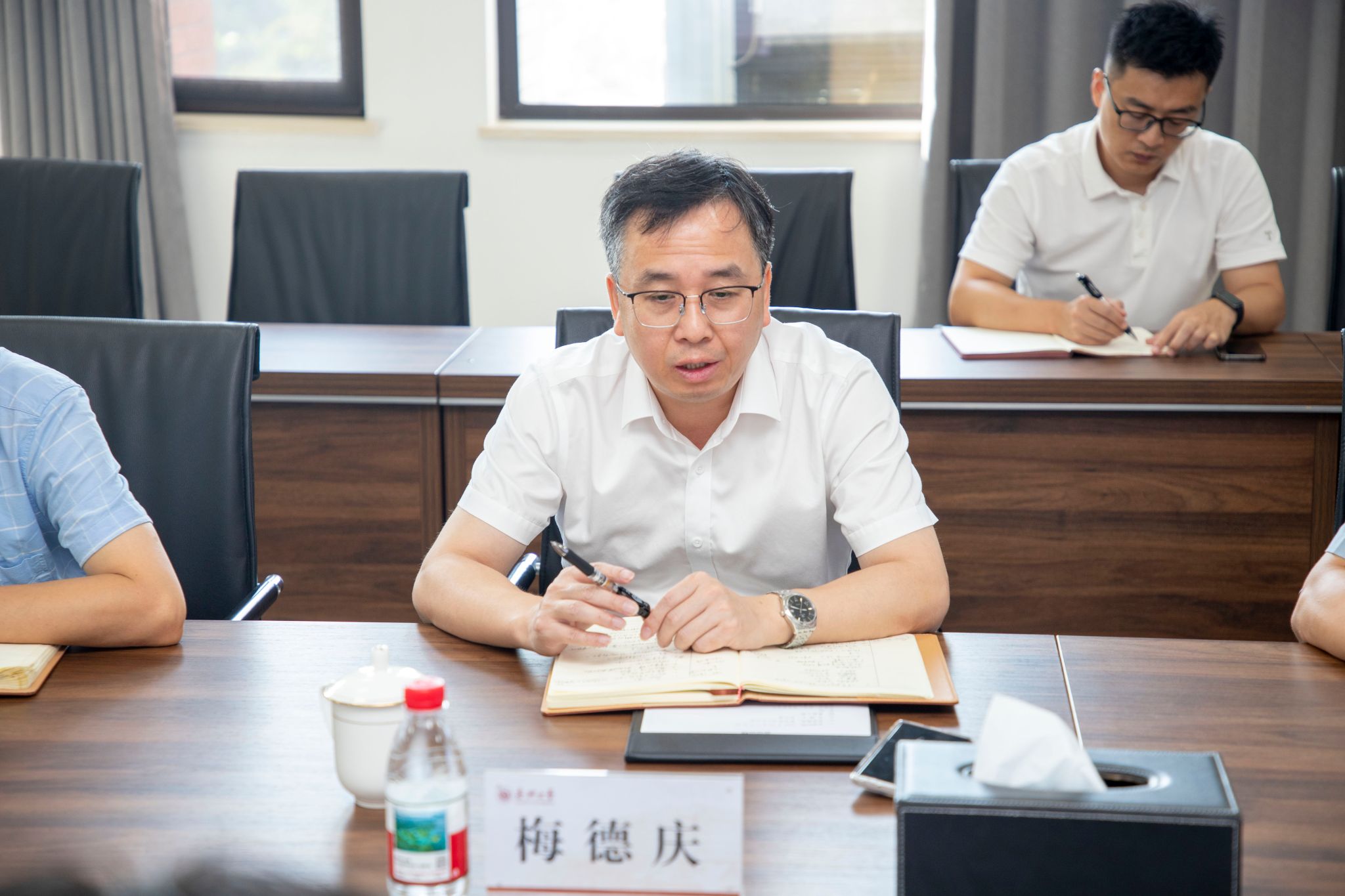 梅校长同时还对学院高层次人才引育、学院与研究院关系、人员岗位类型设置、学生竞赛组织开展、实验室建设等具体问题做了详细的指导。发规处、科技处负责人也做了交流。